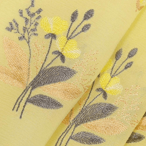 1) A Very pretty Yellow saree adorned with embroidered flowers adjacent to the beautiful exotic floral series across the saree.
