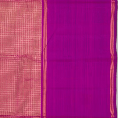 Elevate your traditional wardrobe with this checks patterned Taranga Kanchi silk saree. The gold zari checks body is adorned with a self-plain medium border, adding a subtle charm. The self-silver zari kaddi pallu enhances its appeal. Paired with a self-gold zari horizontal lines blouse featuring plain borders, this saree is a timeless classic.